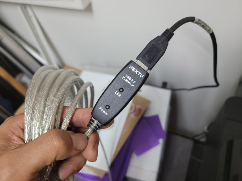 유선 또는 무선 네트워크로 연결하면 아무 문제가 없는데 보안상 네트워크 사용이 불가하여 USB 케이블 사용하는 경우에 많이 사용되는 증폭 리피터 연장 케이블입니다. 컴퓨터의 잔여 전력과 함계 데이타를 전송하게 되는 프린터 AB USB케이블은 5미터 이상 사용시 데이타전송에 오류가 생길 수 있어 기본 1~1.5미터 USB AB케이블을 사용하고 나머지는 USB 증폭 리피터 케이블를 이용하여 연장 사용하면 이러한 부분을 막을 수 있습니다.