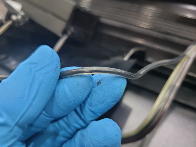 ● 프린터 헤드 클램프 부착 및 핫멜트 보강, 호스 재정리 장착
