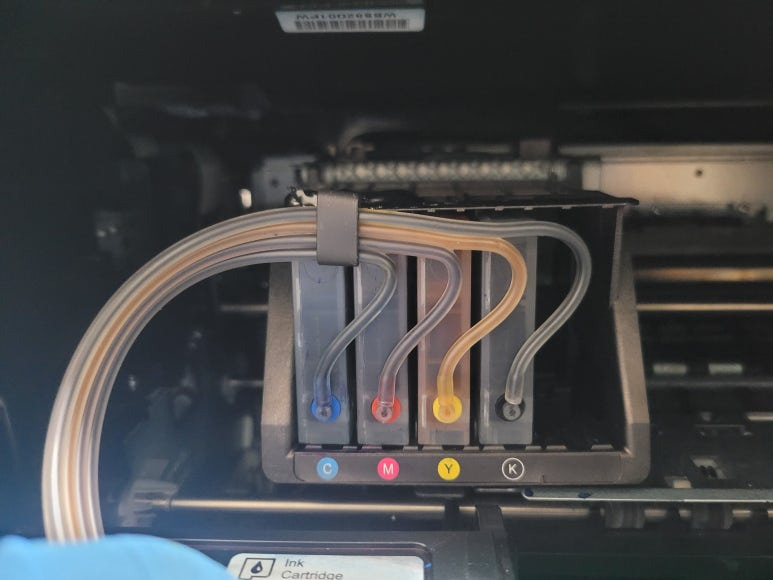 프린터헤드는 열분사 방식으로 잉크가 빠진 상태에서 사용시 헤드 노즐이 타서 망가집니다.