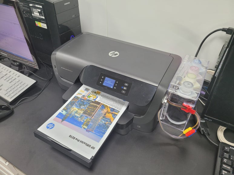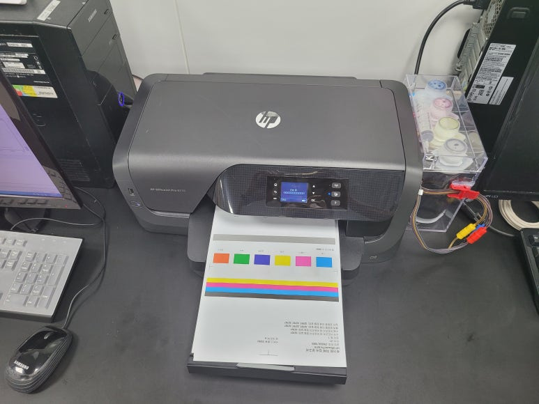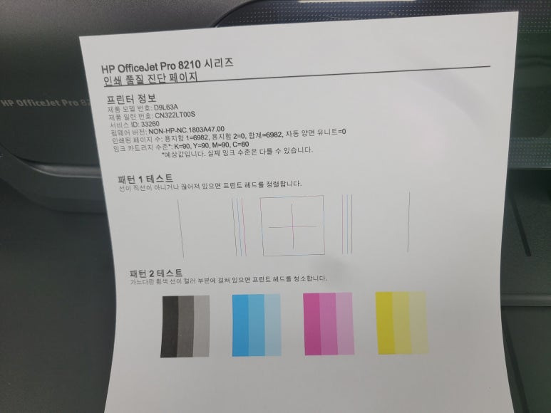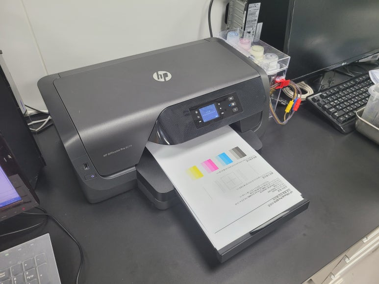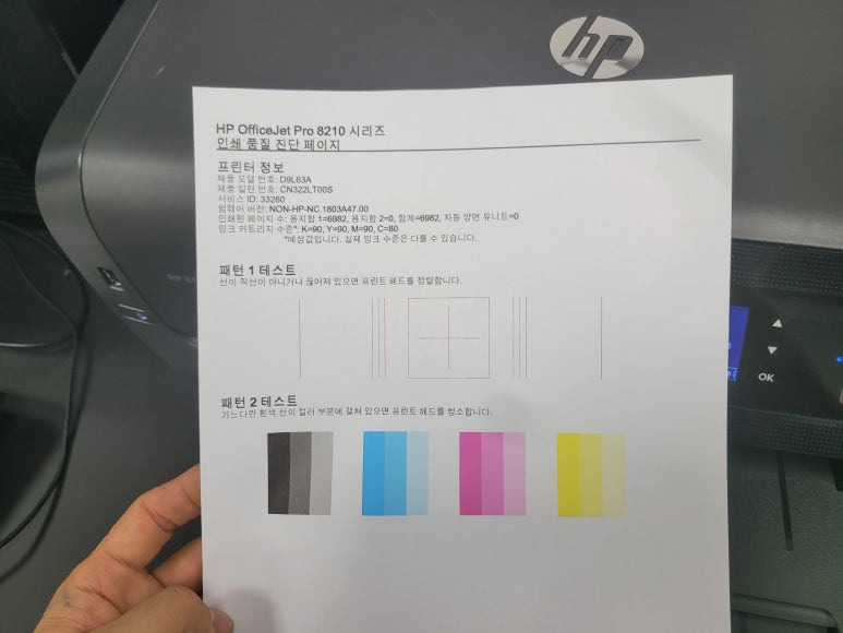 경기도 화성시 만세구 발안 소재, 사무실에서 문서출력용으로 사용하는 HP 8210 프린터인데 프린트헤드문제 불량으로 출장수리 요청하여 스케줄 잡아 이동하여 수리 완료했습니다.