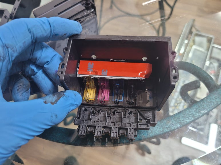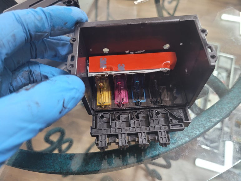 ● HP 729 프린트 헤드(F9J81A) 챔버 탄성접착제 도포 및 테이핑 보강