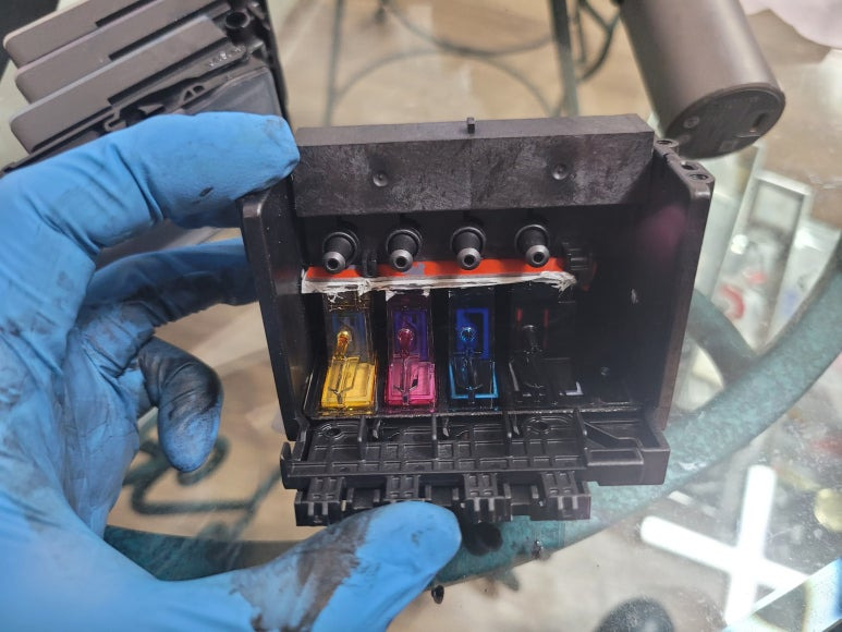 ● HP 729 프린트 헤드(F9J81A) 분해 칩판부 비닐탈락 수리