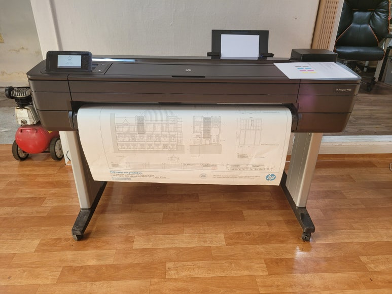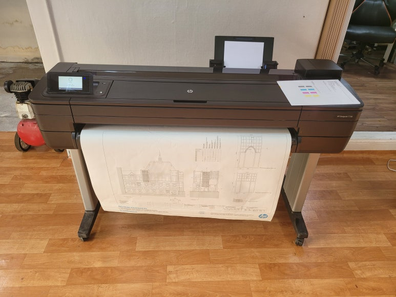 건축건설 플랜트 관련 사무실에서 도면 출력용으로 사용하는 HP DesignJet T730 36인치 플로터 A0 출력 대형 프린터 플로터인데 출력불량으로 출장수리 요청하여 스케줄 잡아 방문 출장 수리를 완료했습니다.