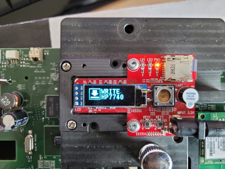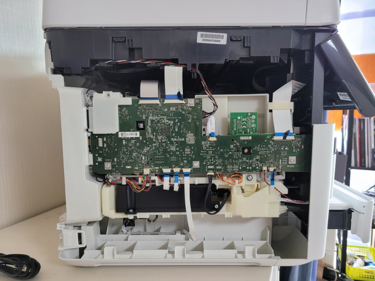 왼쪽 커버를 개방하여 메인보드를 때어냈습니다. Chipless Solution (No Chip) 지그에 물렸습니다.