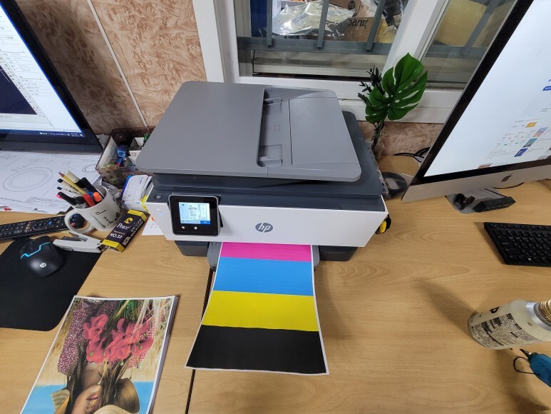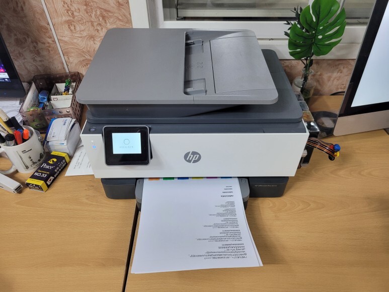 경기도 화성시 장안면에 소재하는 생산업체 사무실에서 사용하는 HP 9010 무한잉크 기업형 No Chip 팩스복합기인데 온라인으로 구매하고 출력량이 적고 관리 소홀로 출력이 매우 불량하고 헤드 노즐이 막혀 출장 수리 요청하여 스케줄 잡아 이동 수리 완료했습니다.