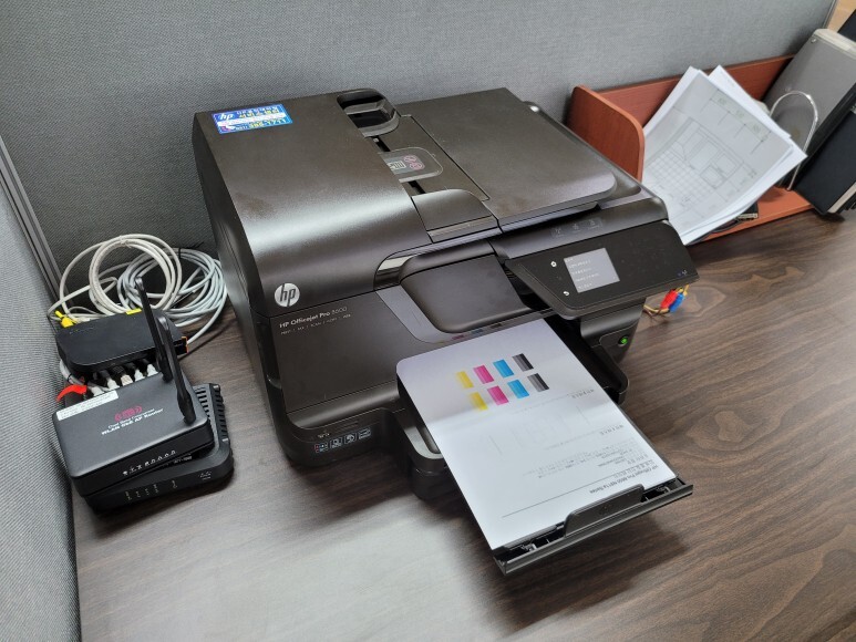 오래전에 단종된 HP 오피스젯 8600 무한잉크 팩스복합기인데 오랜 미사용 및 관리 소홀로 카트리지 문제 등등 출장수리 요청하고 스케줄 잡아 이동 출장 수리 완료했습니다.