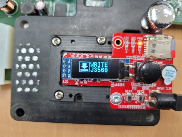No Chip 펌 및 무한잉크를 위해 메인보드를 펌지그에 물렸습니다.