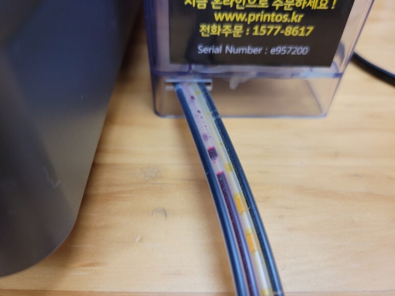 공급선(호스) 내부에 잉크가 빠져 있고 잉크가 제대로 공급되지 않고 있었습니다.