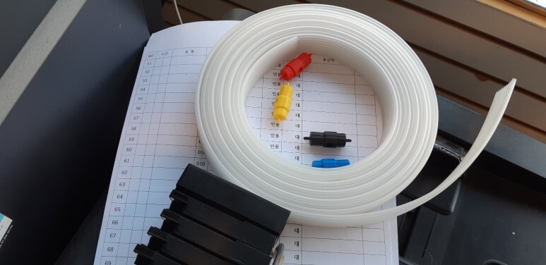 호스를 잘라 폐기하고 신규 공급선, 호스로 교체, 기존 카트리지도 손상되어 금형카트리지와 ARC 칩도 새로 교체했습니다.