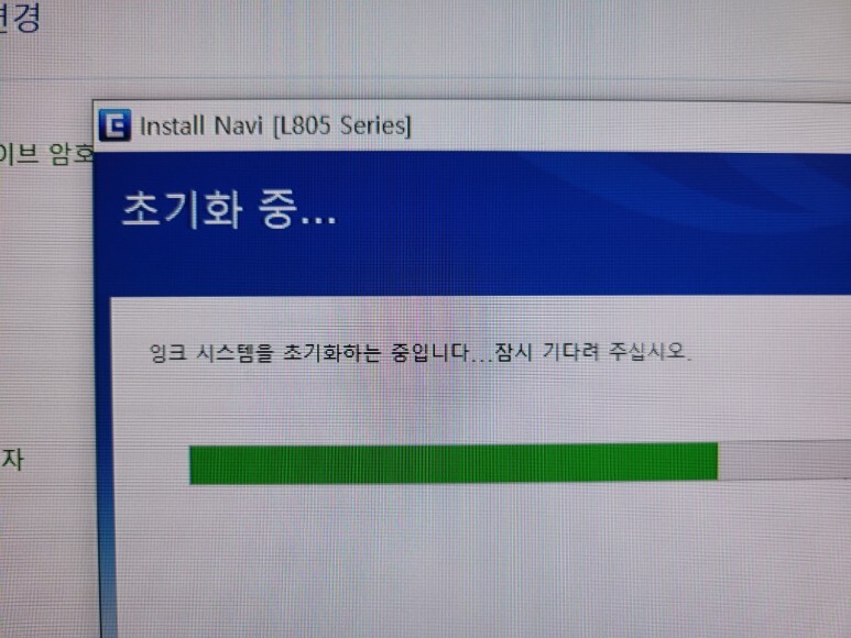 전원을 연결하고 잉크방울을 5초간 눌러 초기화를 시작했습니다.