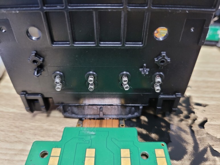 카트리지를 제거하고 헤드 내부를 보니 심하게 잉크로 오염되어 있었습니다.