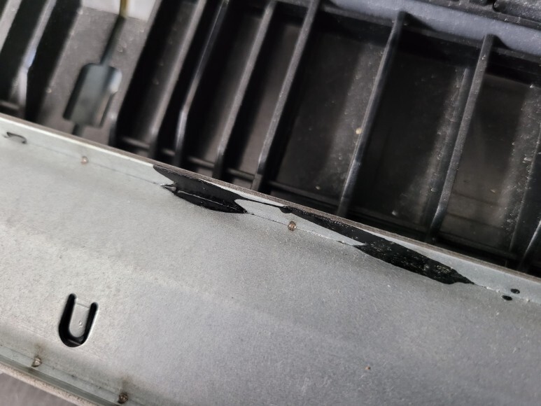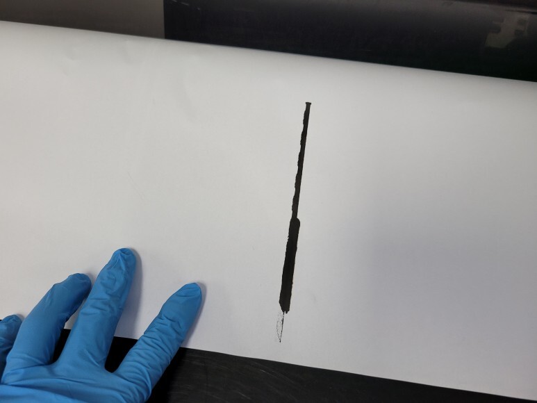블랙 색상의 챔버 터짐 부위의 정도를 확인했습니다. 2군데가 찢어져 잉크가 새고 있었습니다.