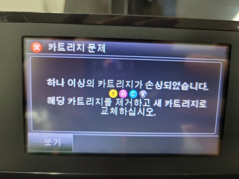 HP T520 카트리지 문제 4색 전체 액정 화면에 나타나 동작 불가 상태였습니다.