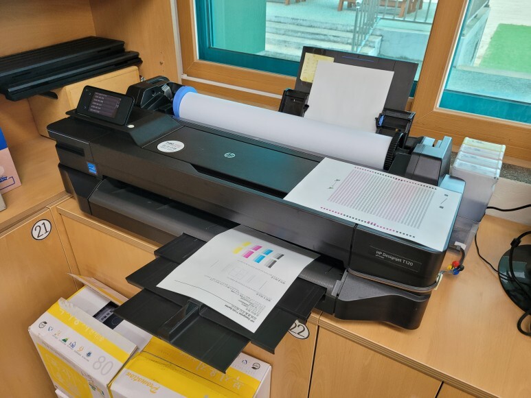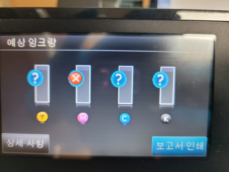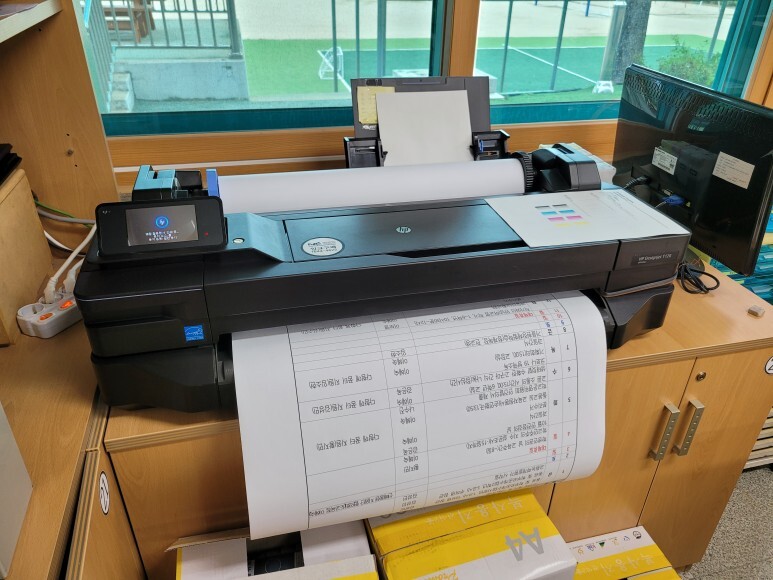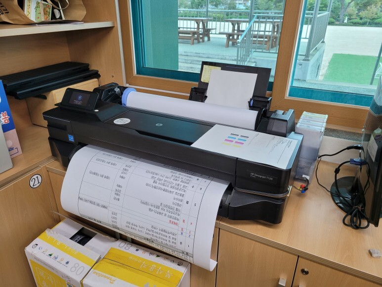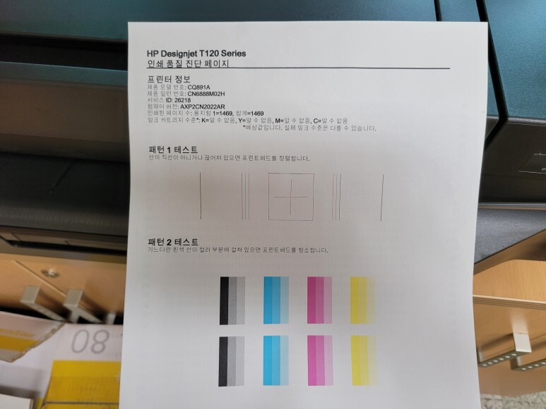 잉크 카트리지 소모됨 문제로 플로터가 멈춰 있었습니다.
