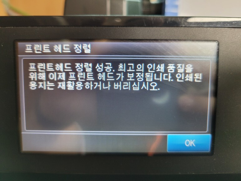 초기화 후에 정상적으로 프린터 헤드 정렬 완료했습니다.