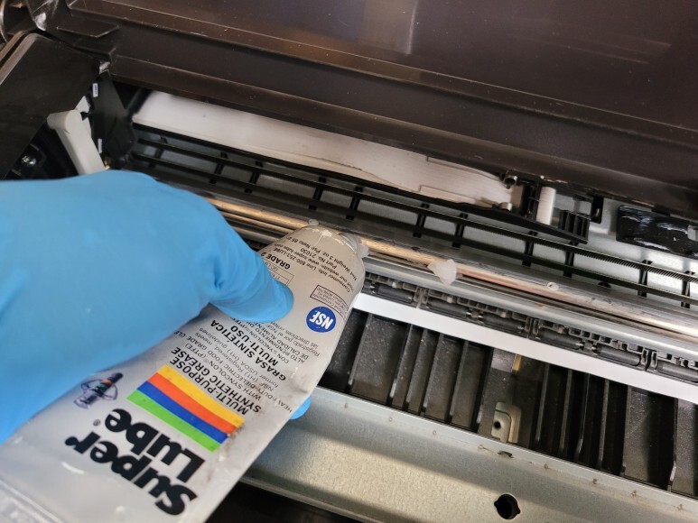 경기도 평택시 소재 초등학교에서 A1 POP 홍보물 출력용으로 사용하는 플로터로 헤드 챔버가 터져 헤드 교체 출장수리 완료했습니다. 오래되서 노후화된 퀵차단밸브 및 신규 체인 및 브라켓으로 모두 교체 완료했습니다.