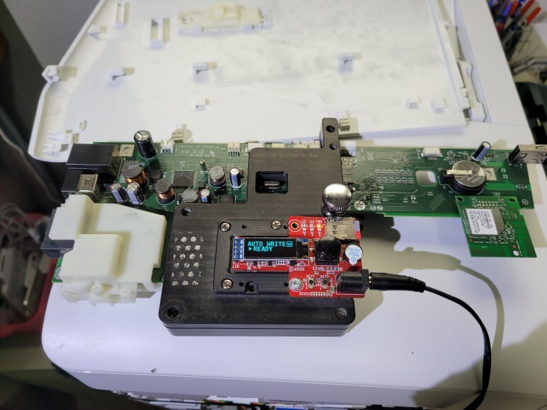 메인보드를 장비에서 분리하여 No Chip (Chipless solution) 펌 지그에 물렸습니다.