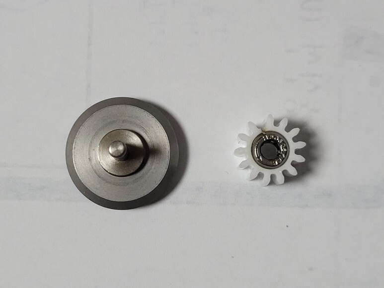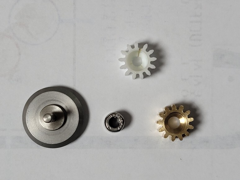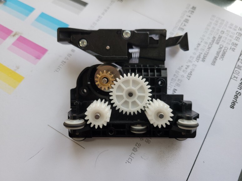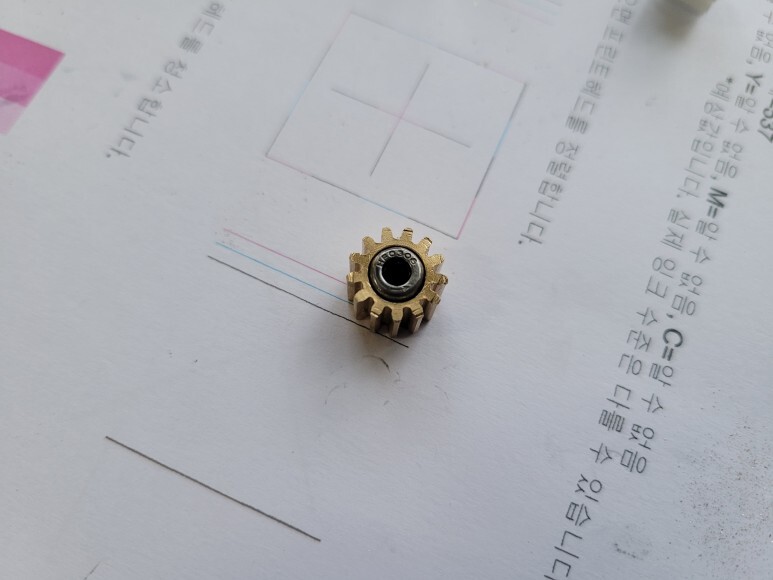 깨진 기어는 폐기하고 새로운 기어에 기존 베어링(스텐)을 고무 망치 등으로 끼어 넣습니다.
