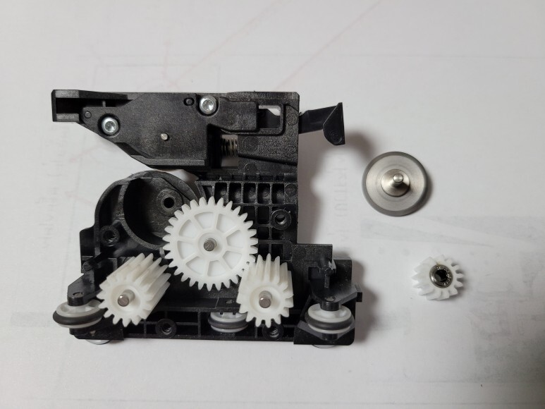 HP T120, T125(T130) T520, T525(T530) 용지자르기가 안 되는 경우, 칼날 내부에 톱니 기어가 크랙, 깨져서 용지가 걸리고, 자르기가 안되는 경우가 발생합니다. 칼날 불량 하나로 인해 잦은 용지 걸림, 캐리지벨트 훼손 및 벨트 도르레 탈락, 헤드 불량 등의 문제를 일으킬 수 있어 초기에 수리 및 교체를 해야 합니다.