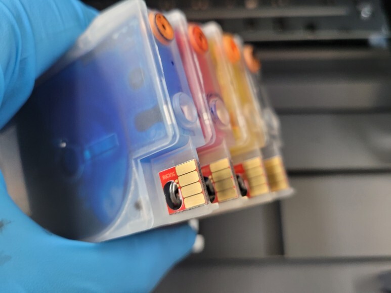새헤드로 교체하고 칩없이 구동하는 기업형 무한잉크로 전환, 사용하기 위해 유한 4칩으로 모두 제거했습니다.