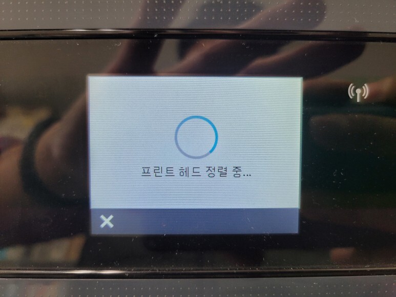 전원을 켜 초기화했습니다. 헤드정렬페이지가 나오고 칩없이 구동되는 무한잉크, No Chip 기업형으로 전환 완료했습니다.