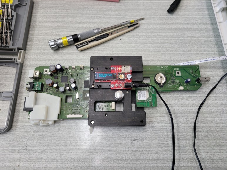 왼쪽 하우징을 열어 메인보드를 때고 No Chip 펌 지그에 물려 라이팅했습니다.