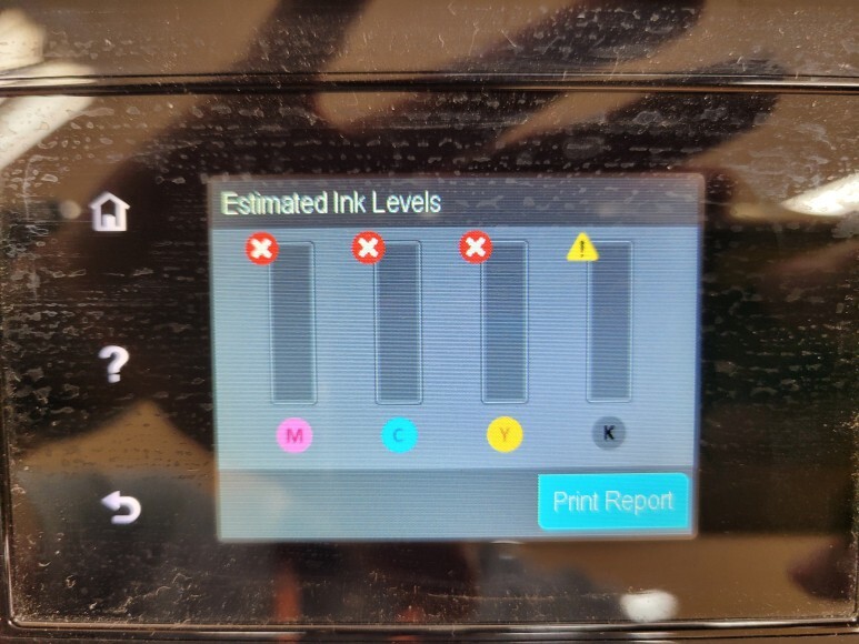 K 색상을 제외하고 칼라 색상은 미사용으로 인해 잉크가 빠져 카트리지 내 잉크 소모됨 문제가 발생, 잉크를 석션하고 호스 및 카트리지 내부에 가득 채웠습니다.