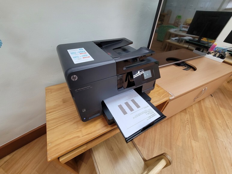 용인 처인구 소재 초등학교에서 사용하는 HP 오피스젯 8610 무한잉크 A4 팩스복합기에서 잉크 카트르지 소모됨 문제로 출장 수리 요청하여 스케줄 잡아 이동, 출장수리 완료했습니다.