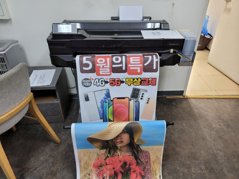 경기도 군포시 산본 소재 스마트폰, 모바일 대리점에 1년 약정, 무제한 출력, CMS 카드 자동 결재 계약으로 HP T520 24인치 A1 플로터로 ALL 안료잉크로 무한잉크 세팅해서 플로더 임대 설치했습니다.