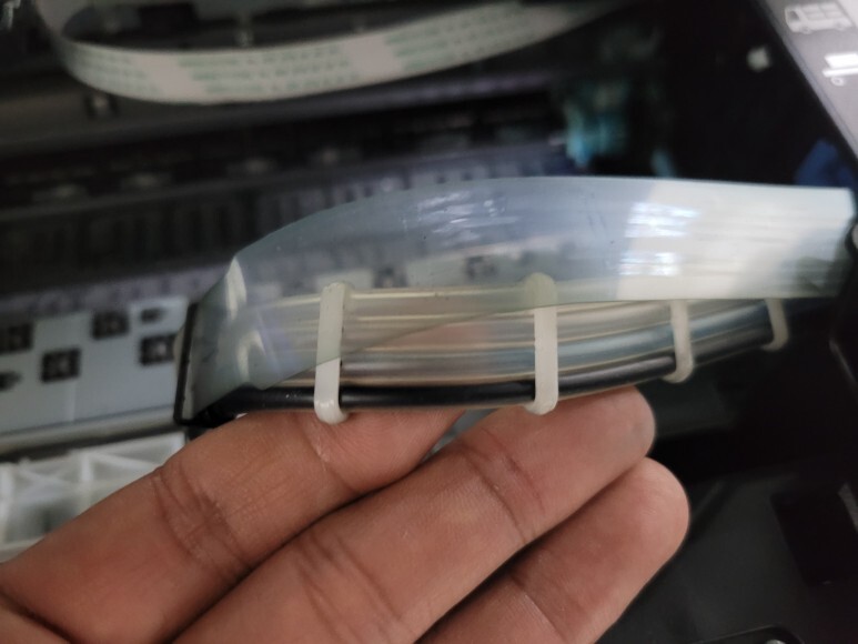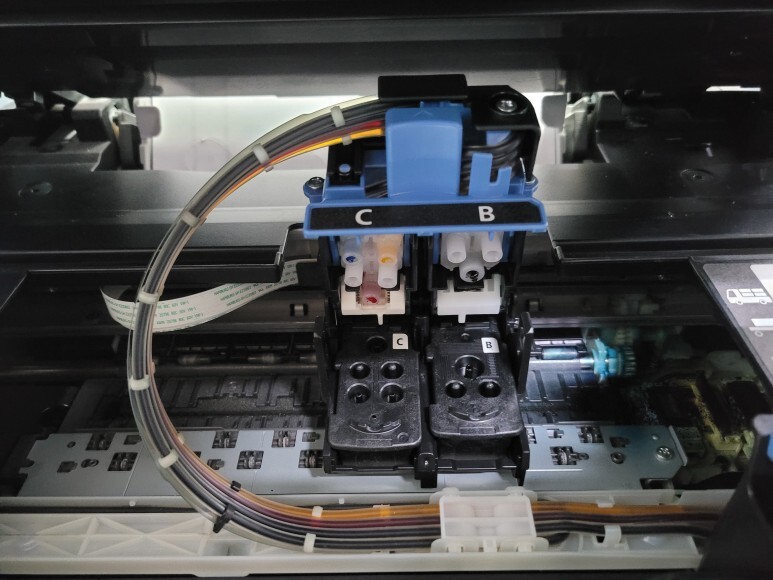 상부를 열어 내부 잉크 공급선에 검정을 제외하고 모두 잉크가 빠져 잉크 공급이 안 되고 있었습니다.