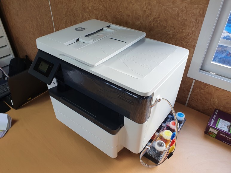 HP 7740 무한잉크, 임대형 및 기업형, B2B용 (보험사, 군부대, 학교, 학원, 부동산, 핸드폰매장, 교육사 등등)으로 사용되는 칩없이 구동하는 기업형 No Chip (Chipless Solution) 무한잉크 장비를 스케줄 맞춰 출장설치 완료 했습니다.