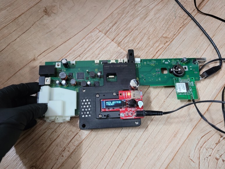 메인보드를 장비에서 분리하여 No Chip (Chipless solution) 펌 지그에 물렸습니다.