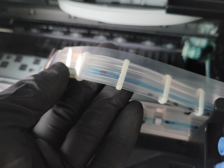 잉크 공급선, 호스에 잉크를 가득 채웠습니다.