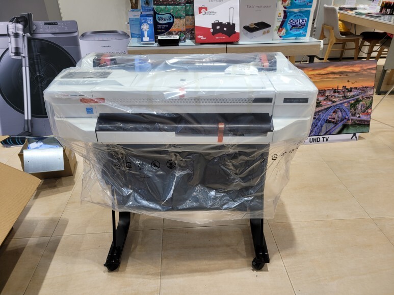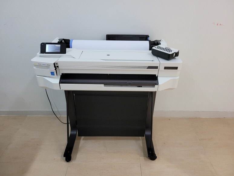 조립한 스탠드를 HP T525 24인치 플로터에 거치했습니다.