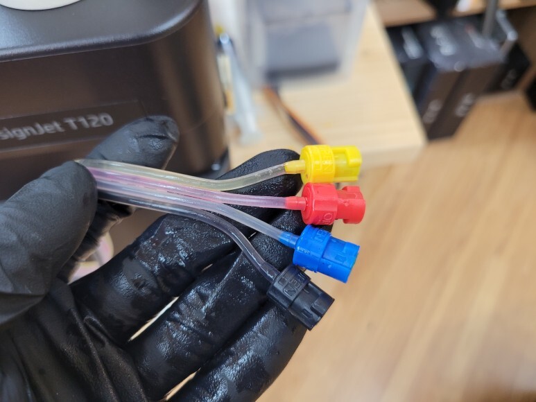 공급선, 호스 내부에 잉크가 빠지고 잉크가 경화되어 있었습니다