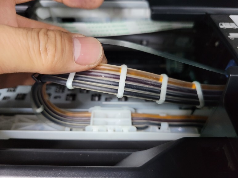 블랙과 컬러 잉크 탱크 커버 레버를 연 후에 헤드/카트리지 홀더를 열어야 호스에 잉크가 안 빠집니다.