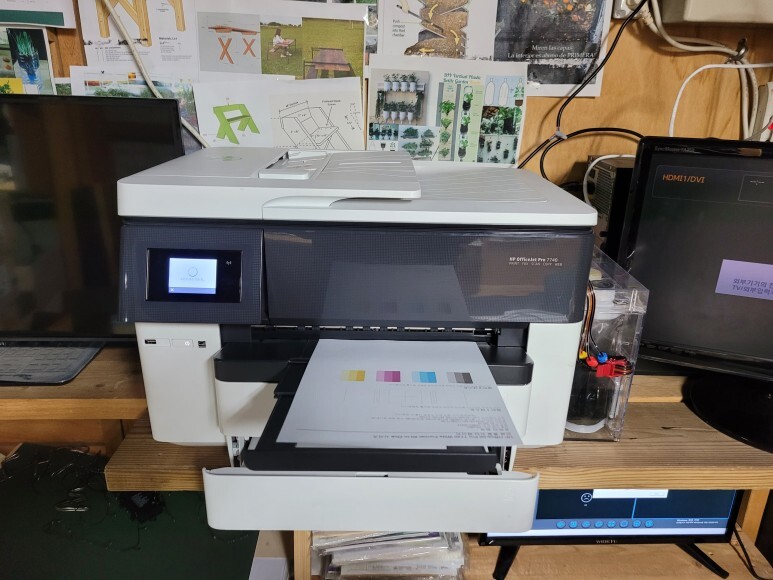 서울시 종로구 소재 카페 및 각종 개발실 겸 사무실에서 온라인 구매하여 사용하는 유한 4칩 HP 7740 무한잉크 A3 A4 2단 급지함 팩스 복합기 장비인데 잦은 카트리지 문제 및 소모품 시스템 문제로 임대형 및 기업형, B2B용 (보험사, 군부대, 학교, 학원, 부동산, 핸드폰매장, 교육사 등등)으로 사용되는 칩없이 구동하는 임대나 기업에 납품되는 기업형 No Chip 무한잉크 장비로 전환 출장수리 요청하여 스케줄 맞춰 방문, 수리 완료 했습니다.