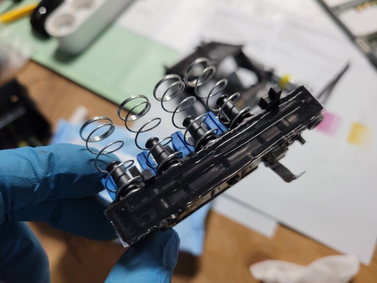 인쇄 품질 진단 페이지르르 출력하니 모든 색상의 출력상태는 좋은데 유독 1색만 안 나온다면 헤드 챔버 터짐 또는 슈팅에어라인 비닐 탈락 원인이 대부분입니다. 슈팅에어라인 비닐을 재접착 했습니다.