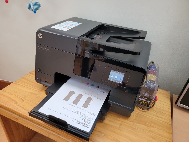 서울시 마포구 소재 **초등학교내 유치원에서 사용하는 HP 8610 무한잉크 입니다.유지/관리 등 사용만 꾸준히 한다면 오래동안 사용이 가능한 장비이므로 4색 꾸준한 출력 사용이 반드시 필요합니다.