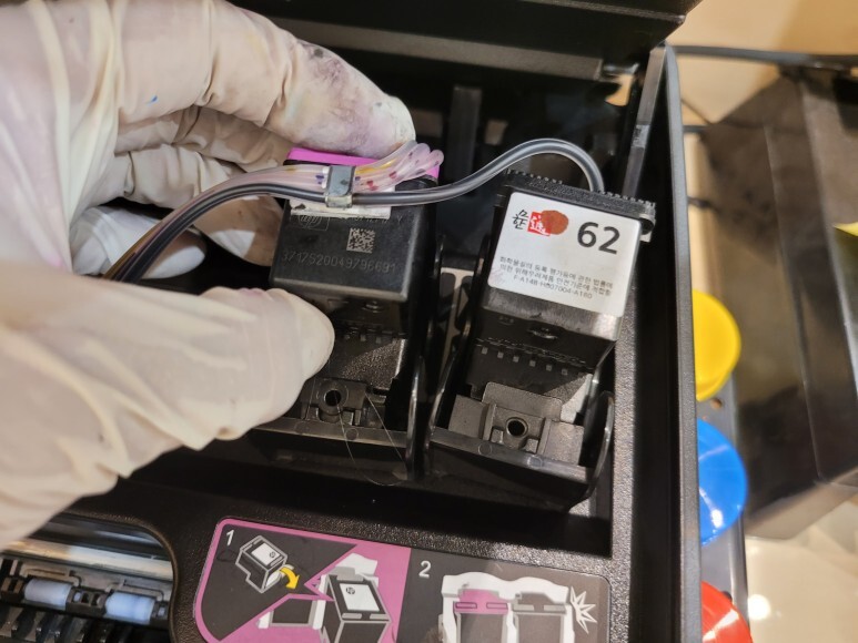 HP 62번 카트리지에 석션 홀더를 장착했습니다.