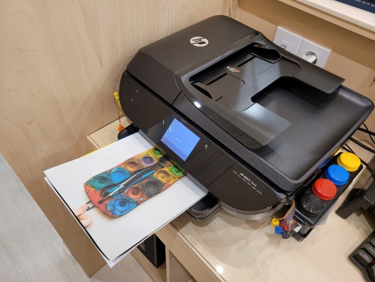 한의원에서 사무용으로 사용하는 HP ENVY 7645 무한잉크 팩스복합기로 출력 불량으로 출장 수리 요청하여 스케줄 잡아 이동, 출장수리 완료 했습니다.