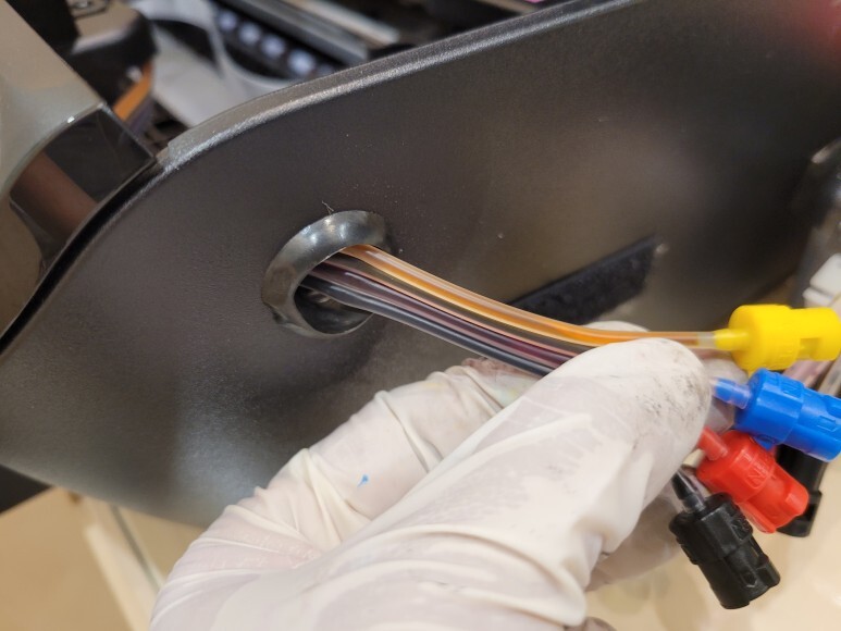 카트리지 장착 후에 잉크 공급선이 걸리지 않게 단단히 고정했습니다.