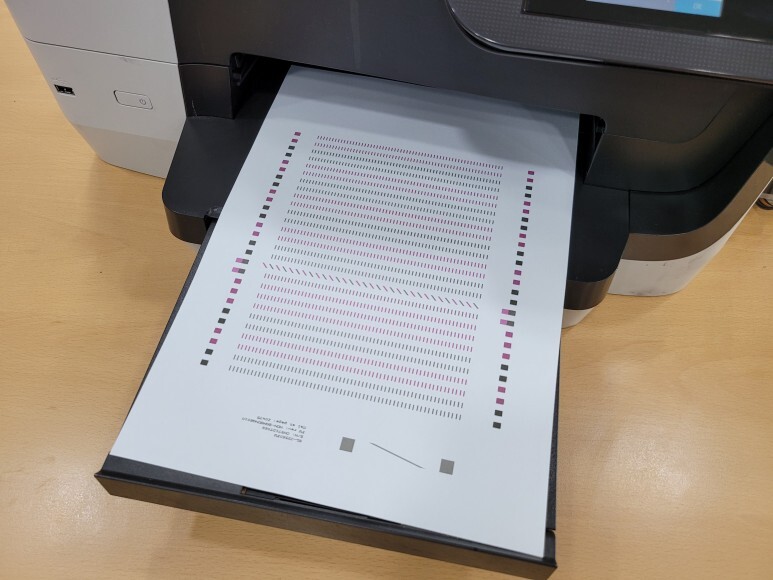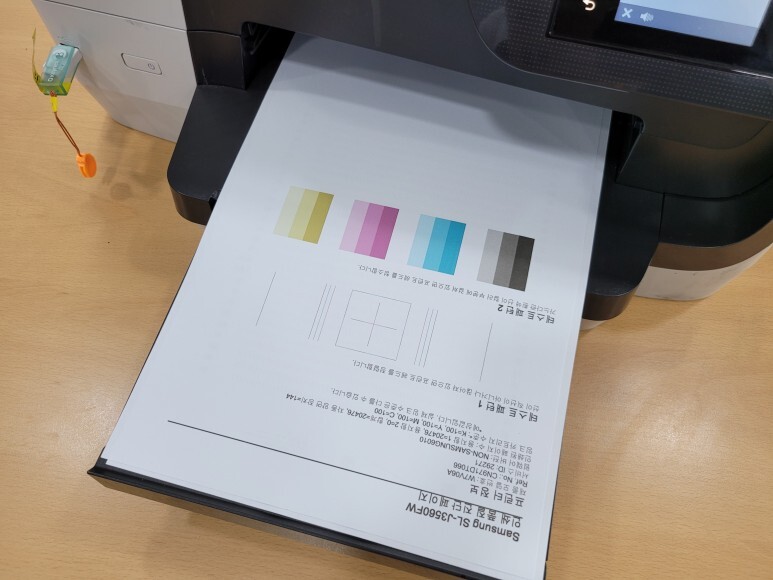 초기화 진행 후 정상적으로 헤드 정렬페이지가 출력되었습니다. 칩없이 구동되는 기업형 No Chip 전환 완료했습니다.