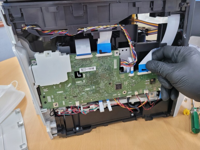 No Chip펌 완료 (OK) 완료 후에 메인보드를 삼성 SL-J3560FW 팩스 복합기에 재장착했습니다.