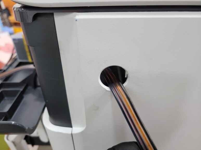 HP 7740 무한잉크 A4, A3 2단급지 팩스복합기로 잦은 카트리지 문제 및 소모품 시스템 문제로 멈춰버린 유한 4칩 HP 7740 무한잉크 장비를 임대형 및 기업형, B2B용 (보험사, 군부대, 학교, 학원, 부동산, 핸드폰매장, 교육사 등등)으로 사용되는 칩없이 구동하는 기업형 No Chip 무한잉크 장비로 전환 출장수리 요청으로 스케줄 맞춰 방문하여 수리 완료 했습니다.