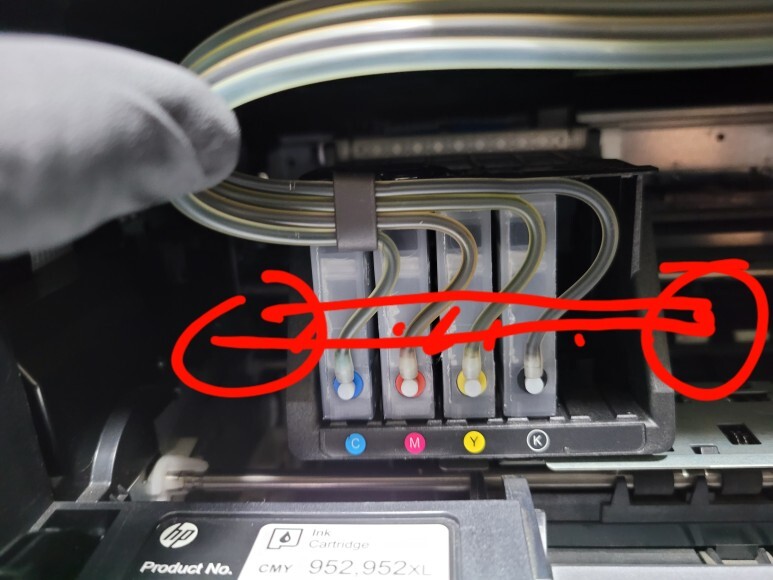 호스 내부 및 카트리지 내부에도 잉크가 모두 소진되어 석션하여 호스 및 카트리지 내부에 잉크를 가득 채웠습니다.