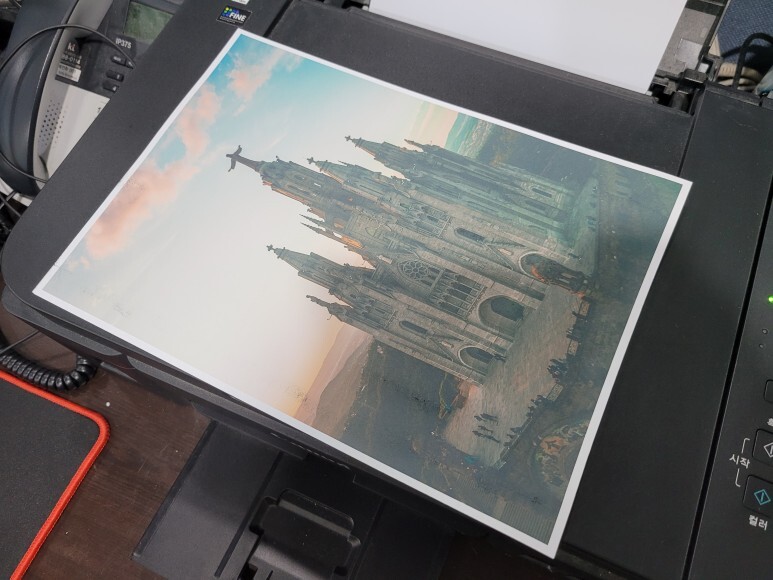 유지 보수에서 인쇄 노즐 점검 페이지를 출력하여 노즐 점검을 했습니다. 블랙 노즐이 출력이 불량했지만 일단, 문서 출력에 큰 지장은 없었습니다.