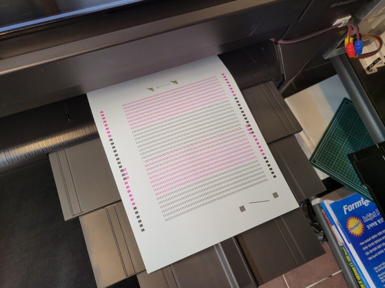 정상적으로 구동하여 헤드 정렬 페이지가 출력되어 나왔습니다.