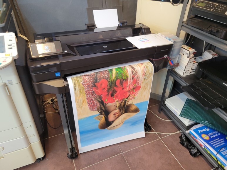 서울 광진구 소재 영화 및 드라마 미술관련 제작사에 사용하는 HP 디자인젯 T520 24인치 플로터 무한잉크 장비인데 잉크 카트리지 소모됨 증상에서 시스템 문제 및 간헐적 헤드 인식 장애 문제로 신규 711 헤드 및 카트리지 교체 진행했습니다.