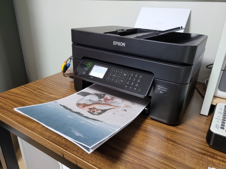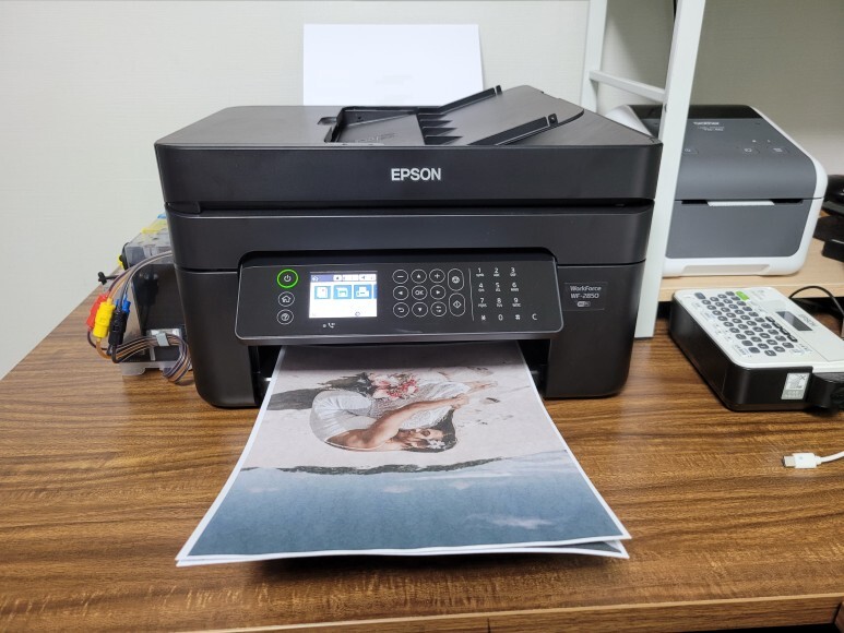 엡손 WF-2850 팩스복합기를 박스 개봉을 하여 테이핑 제거하였습니다. 칩없이 구동하는 무한잉크 장치를 달기 위해 펌웨어 업데이트와 인증키를 입력해야 합니다.